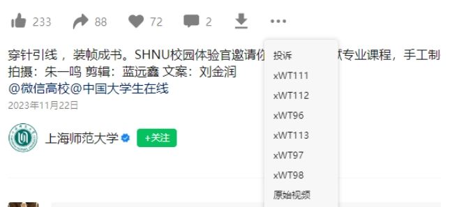默认会下载下拉菜单中第一个质量视频。点开更多,可以下载其他质量的视频,包括原始视频。