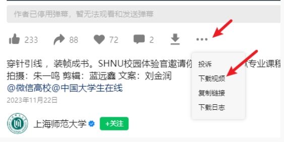 如果没有,可以看看「更多」这里是否有「下载视频」按钮。