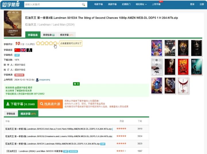 随机点开一个字幕查看详情,具体界面如下: