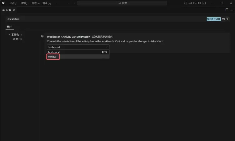 然后直接搜索 Orientation修改为 vertical ,然后重启